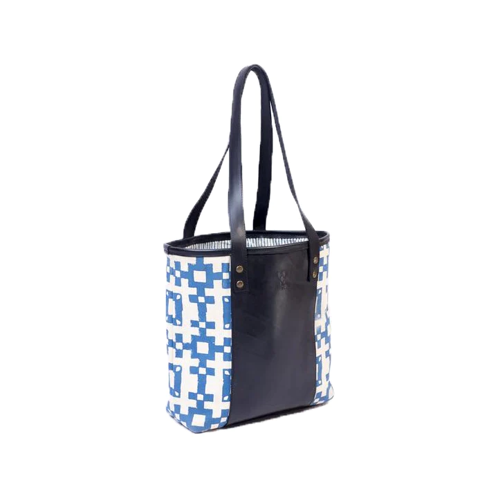 - Made from a discarded tire tube with a traditional hand-stamp pattern on Canvas