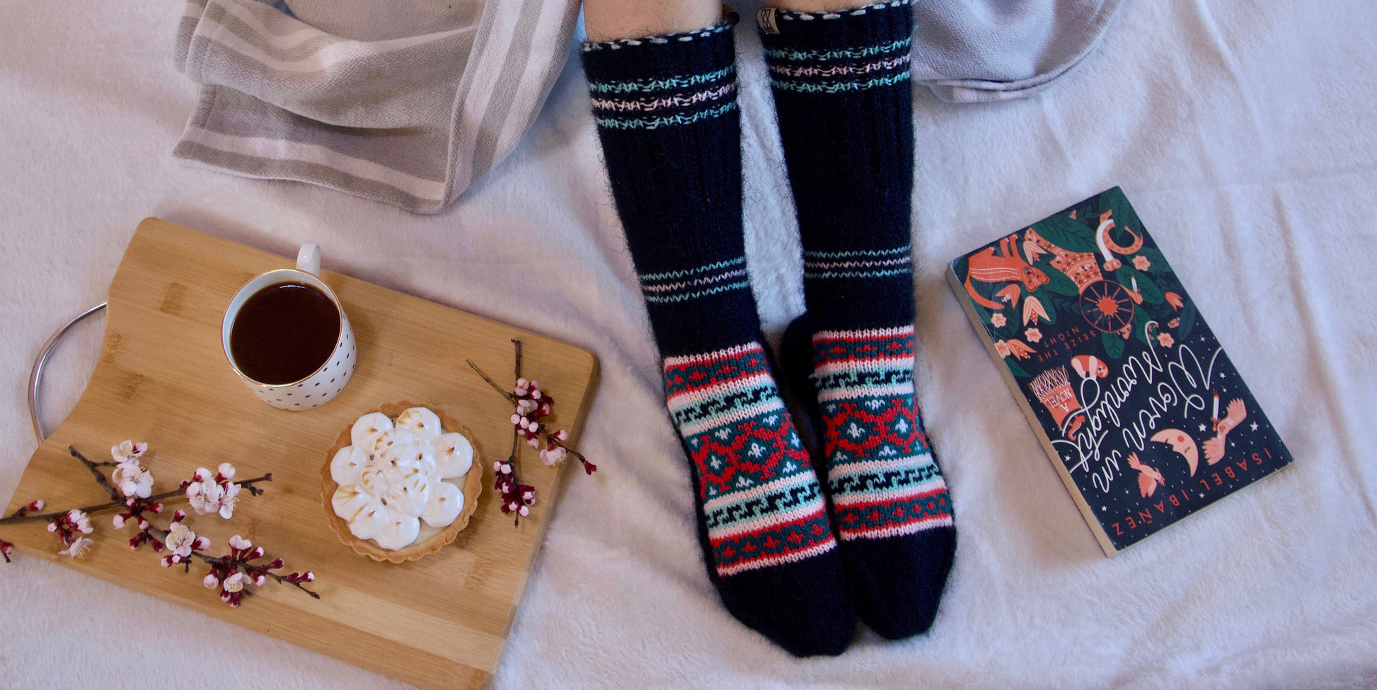 Footnote: Our socks are hand-made by real people. For this reason, each pair may include subtle variations in colour and pattern details from those seen in our photos. The overall colour scheme and design will remain very similar.